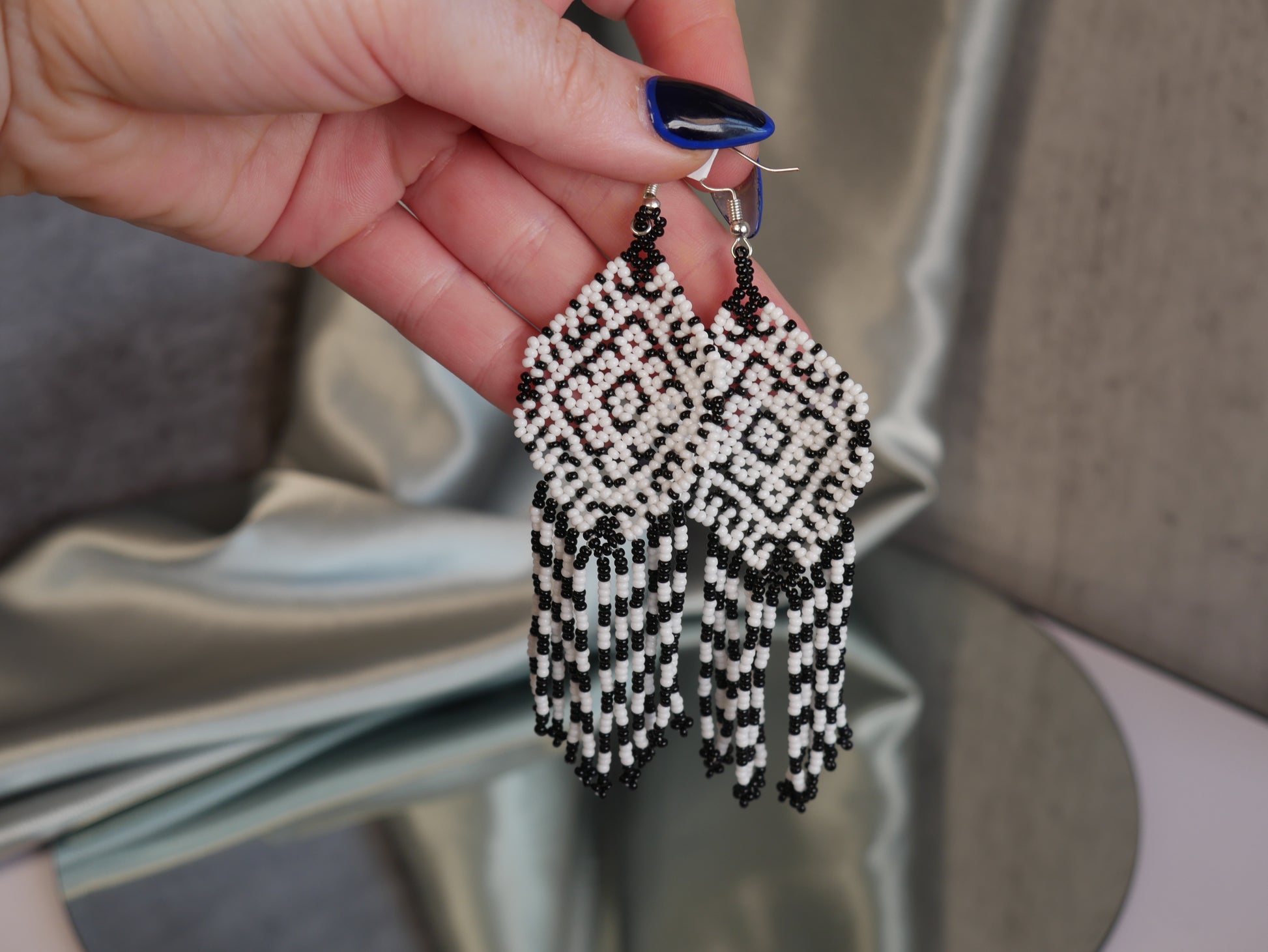 Black & White Earrings - Huichol Bead Art