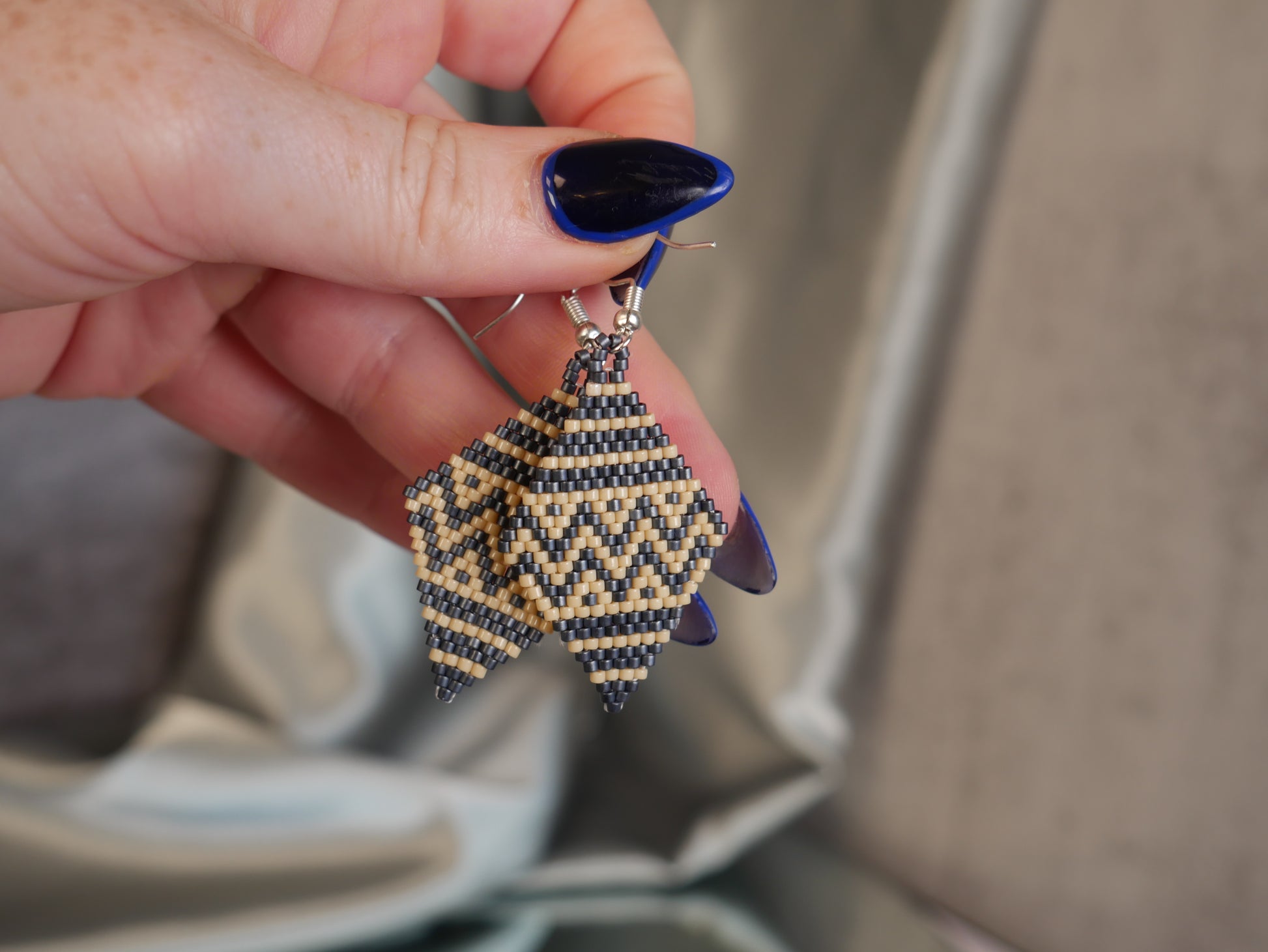 Navy Blue Earrings - Huichol Bead Art